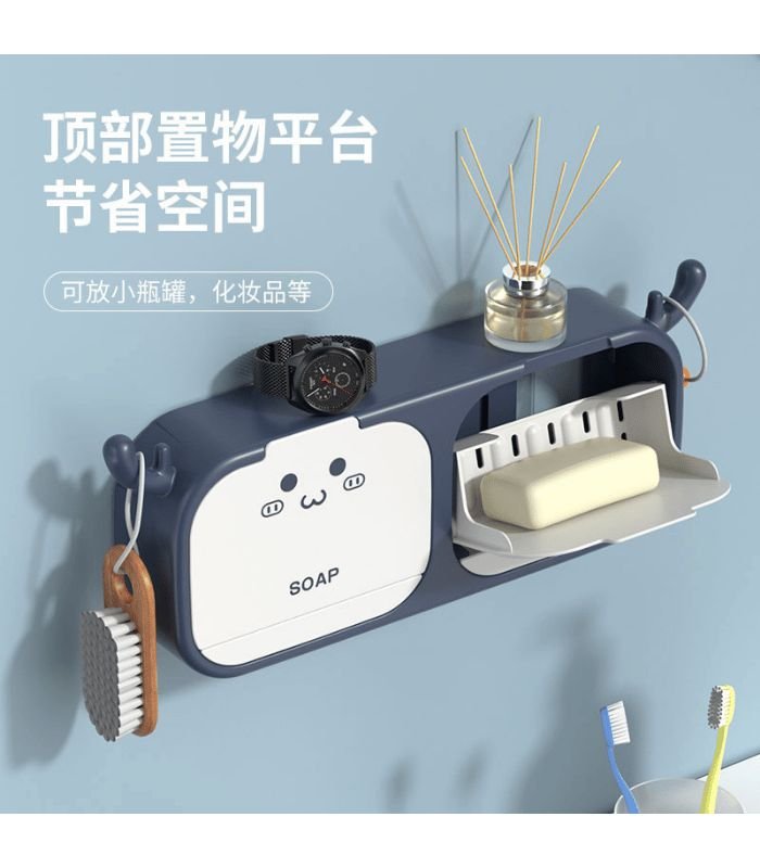 Flip-Cover Soap Box & Organizer I Soap Box Easy to Drain Wall Mounted Soap Dish Holder Cute Deer